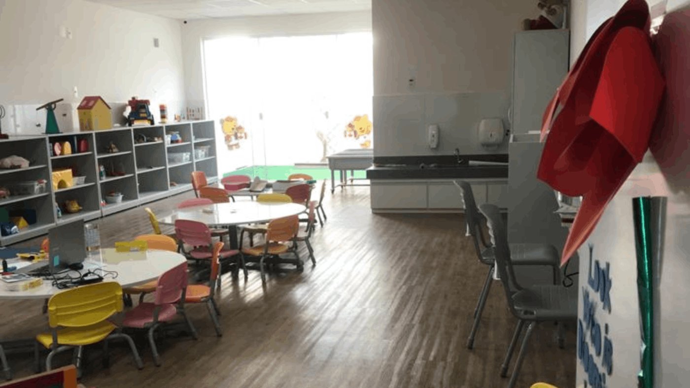 Todos os ambientes escolares permitem ventilação, entrada de luz natural e um alto padrão de higiene (banheiros infantis integrados nas salas, pias infantis em todos os espaços, incluindo salas de aula, refeitório arejado etc.).